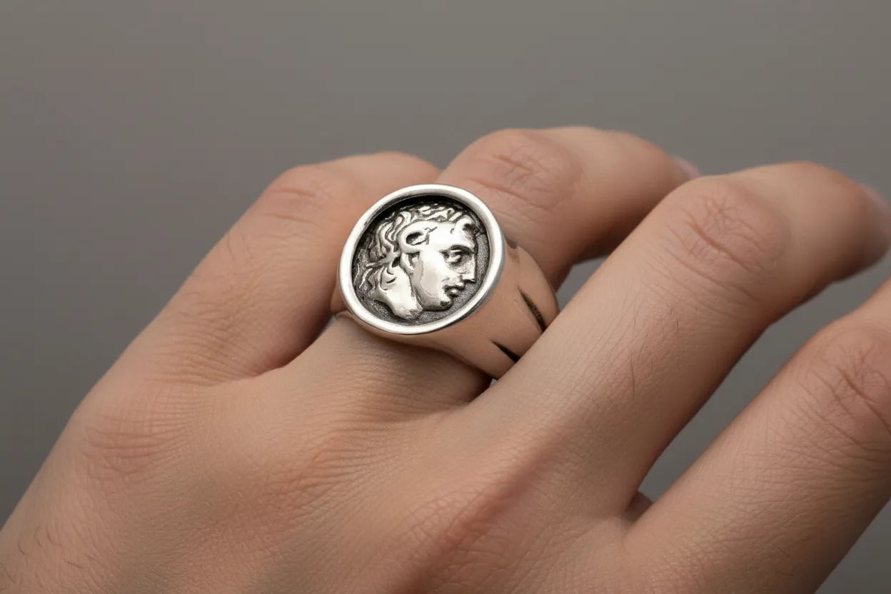 Alexander the Great Portait Coin Ring in Sterling Silver (DT-103)