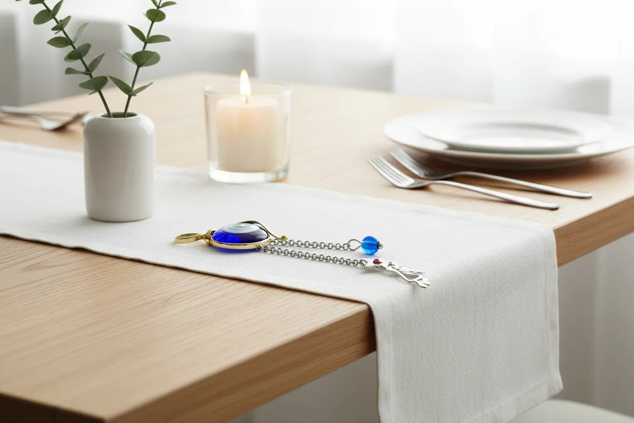 Evil eye protection stone with silver charm, Evil Eye Charm, home décor, gift, Wall Decor, silver charm, Angel Charm