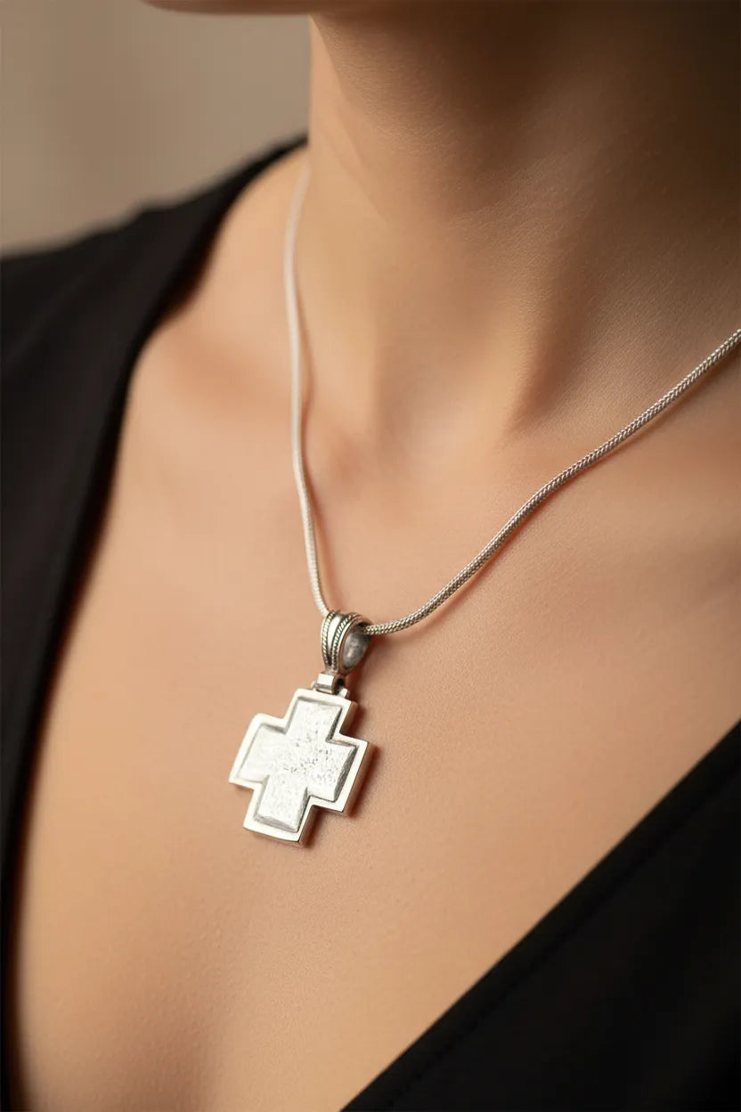 A Hand Made Cross made of sterling silver. This cross can be worn as Christening Cross or as a jewelry.