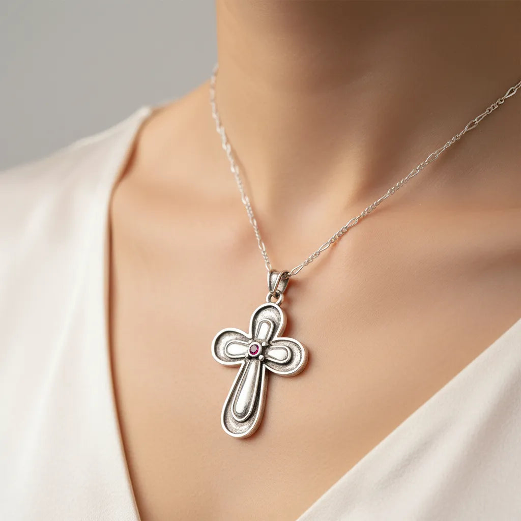 A Hand Made Cross made of sterling silver. This cross can be worn as Christening Cross or as a jewelry.