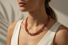 This unique handmade necklace features old Carnelian stones and sterling silver elements, giving it a timeless and luxurious look. The combination of cool silver and warm Carnelian makes a perfect addition to any collection.