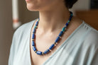 The Necklace is made from sterling silver, Lapis Lazuli and Turquoise. Perfect for any occasion, this unique piece of jewelry is sure to impress. Enjoy the healing power of Lapis Lazuli and Turquoise, while you make a timeless fashion statement.