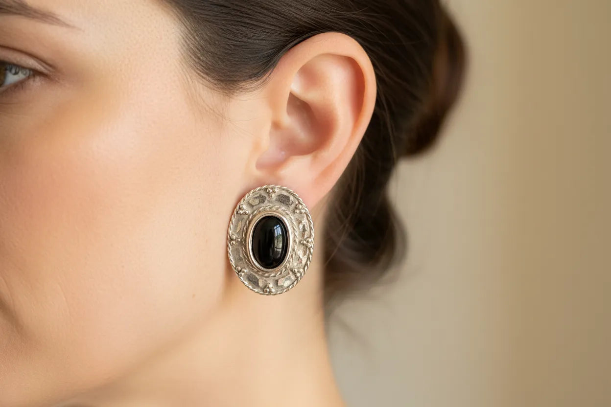 Greek Oval Earrings in Sterling silver with Gemstone (GT-02)