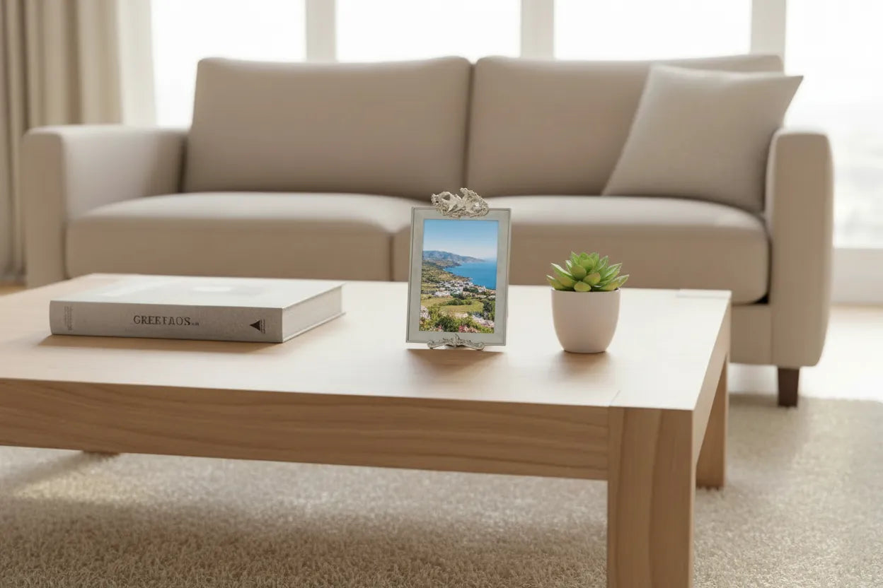 Hand Made Silver Plated Picture Frames with brass as secondary metal and decorated with semi-precious stones inspired by old greek traditional metal performances of balconies.