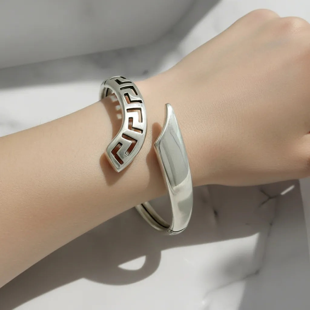 Greek Key Meander Bracelet in Sterling Silver (B-54)