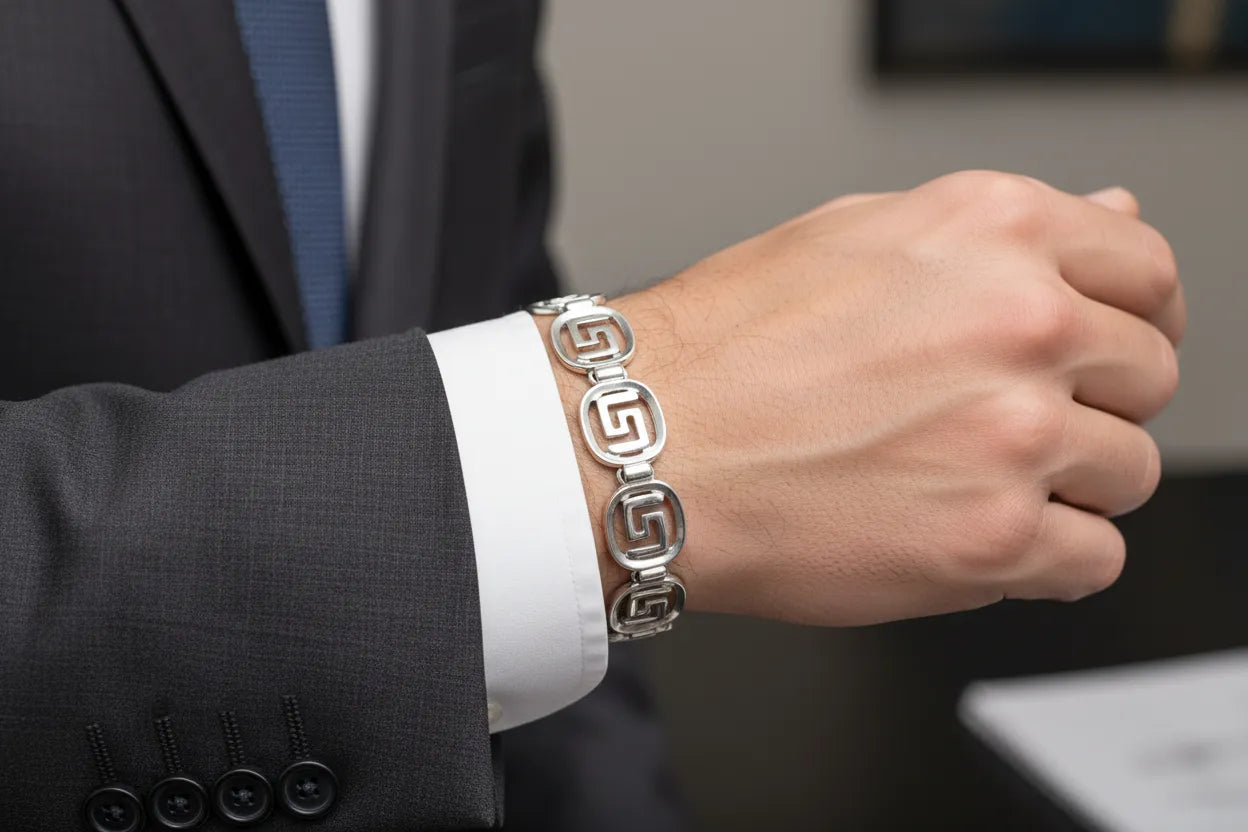 Greek Key Meander Bracelet in Sterling Silver (B-109)