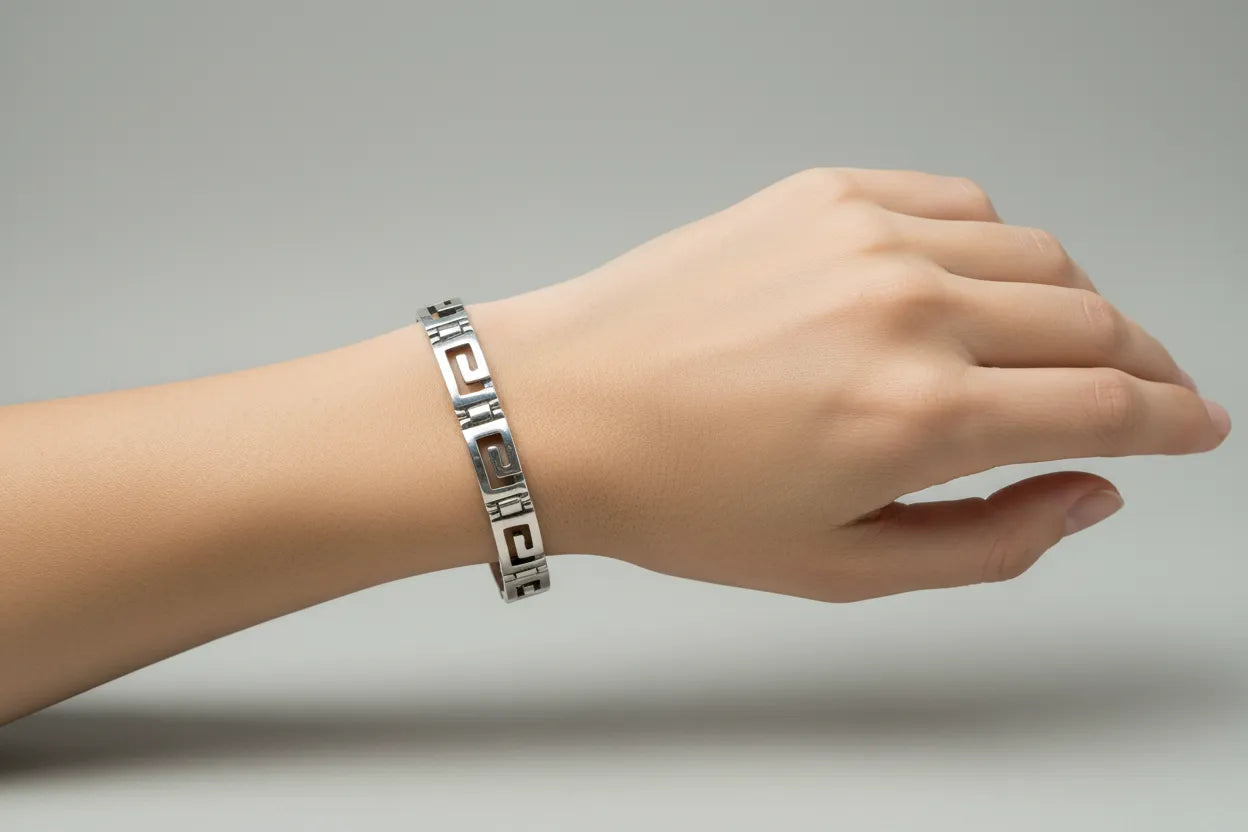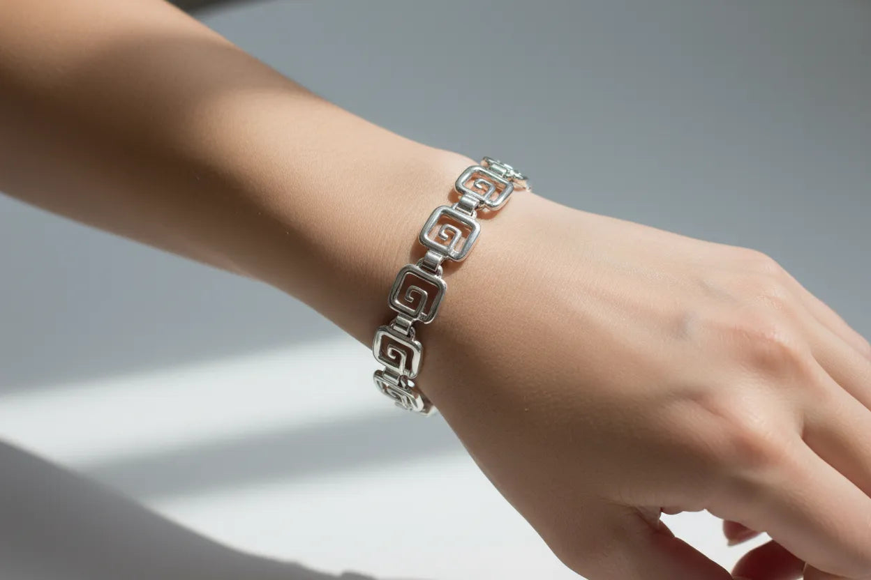 Greek Key Meander Bracelet in Sterling Silver (B-60)