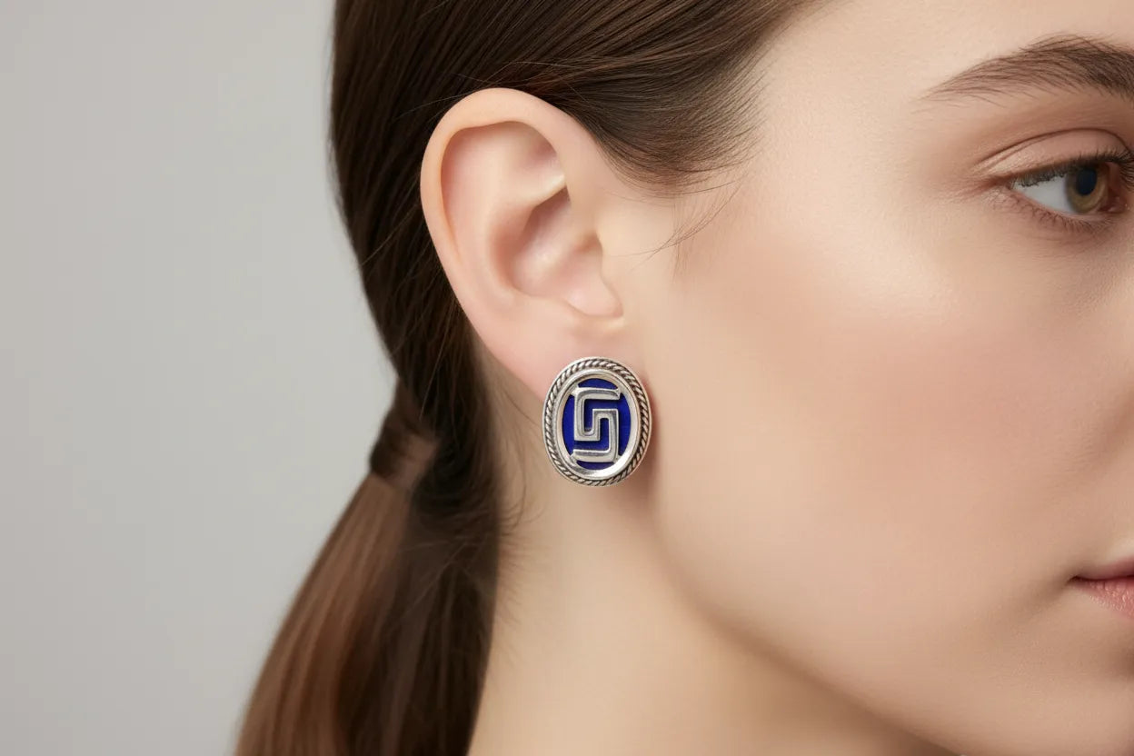 Greek Key Meander Earrings in sterling Silver with Lapis Lazuli (AG-05)