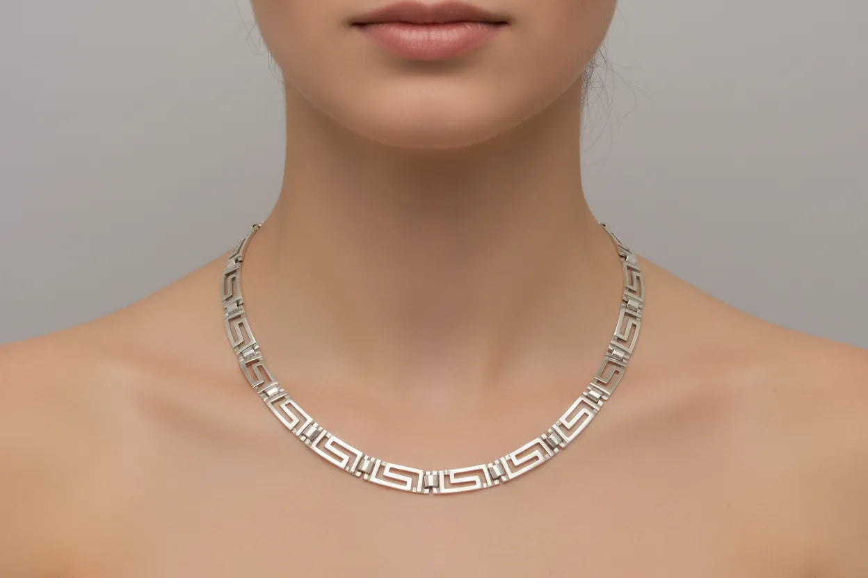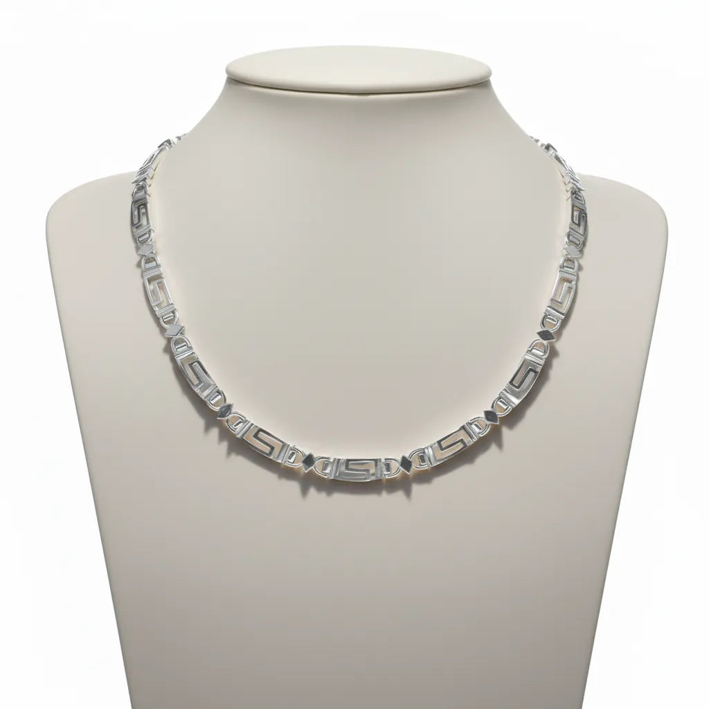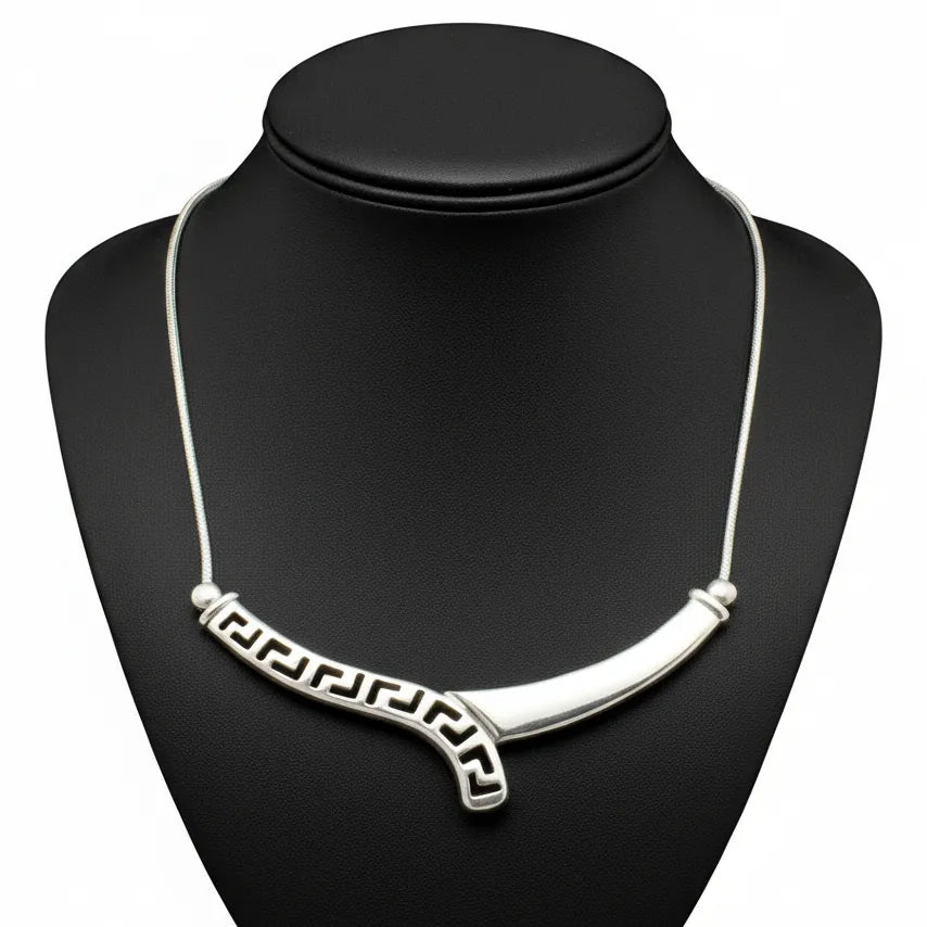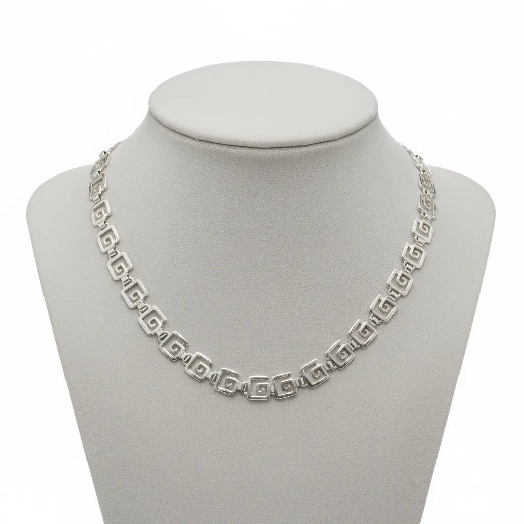 Greek Key Meander Necklace in Sterling Silver (PE-26)