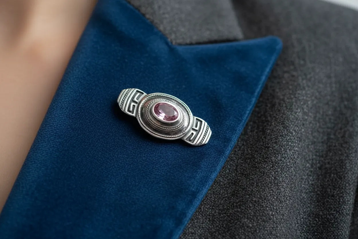 Hellenistic Brooch in Sterling Silver with Amethyst Zircon (K-64)
