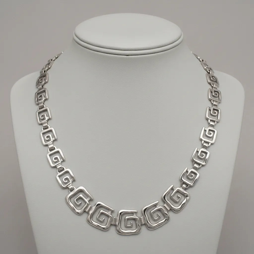 Greek Key Meander Necklace in Sterling Silver (PE-11)