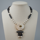 Necklace in 18k gold with Black Obsidian and Pearls