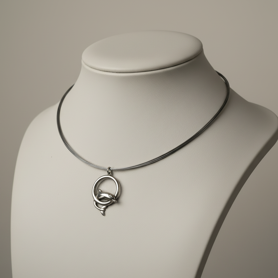 This handmade sterling silver necklace features the traditional Greek Minoan Dolphins Motif decorated with Lapis Lazuli.