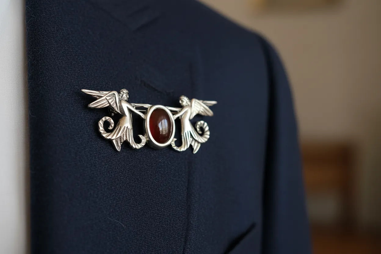Καρφίτσα Greek Traditional Angels σε ασήμι στερλίνα με Carnelian (K-18)