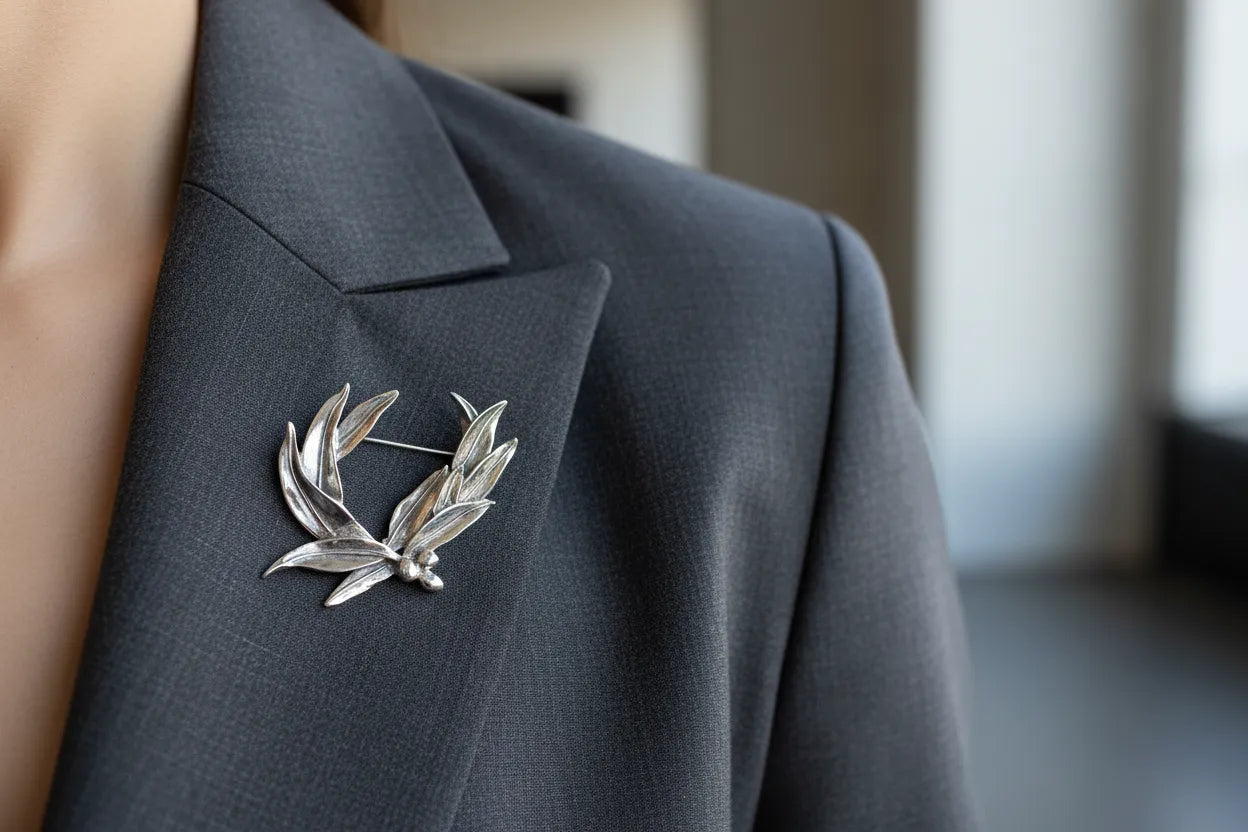 Χειροποίητη ασημένια καρφίτσα εμπνευσμένη από την ελληνική παράδοση.