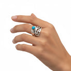 Ελληνικό δαχτυλίδι μπρελόκ Μαίανδρος από ασήμι 925 και τιρκουάζ (DT-65)