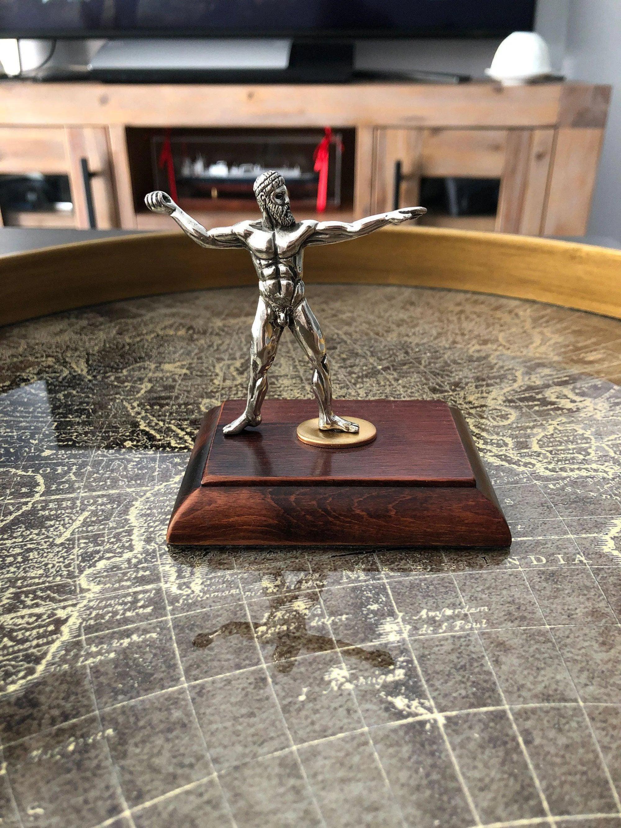 Αυτό το χειροποίητο ασημένιο ειδώλιο διαθέτει το Χάλκινο Γλυπτό του Αρτεμισίου, γνωστό και ως Θεός από τη Θάλασσα και αναπαριστά τον Έλληνα Ολύμπιο Θεό Δία να πολεμά με το χέρι του σηκωμένο και να κρατά τον κεραυνό του από πάνω ή τον Ποσειδώνα να κρατά την τρίαινα όταν βρίσκεται σε μάχη με πιο μαχαιρωμένη κίνηση.
