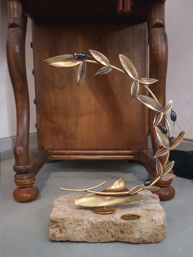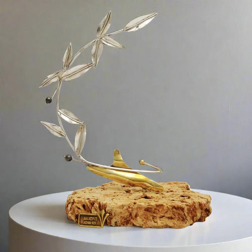 This handmade sterling silver olive wreath is decorated with olives from hematite stones and mounted on a base of limestone and has the shape of olives the Greek symbol of peace protection fertility and immortality. For the ancient Greeks the olive was a symbol of the Olympic ideals of peace wisdom and victory and this is captured in this handmade creation. It is a unique decorative object a remarkable and timeless gift for those who love symbolic luxury.