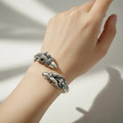 This handcrafted sterling silver cuff bracelet bangle features the Ancient Greek Ram's head terminals Motif.