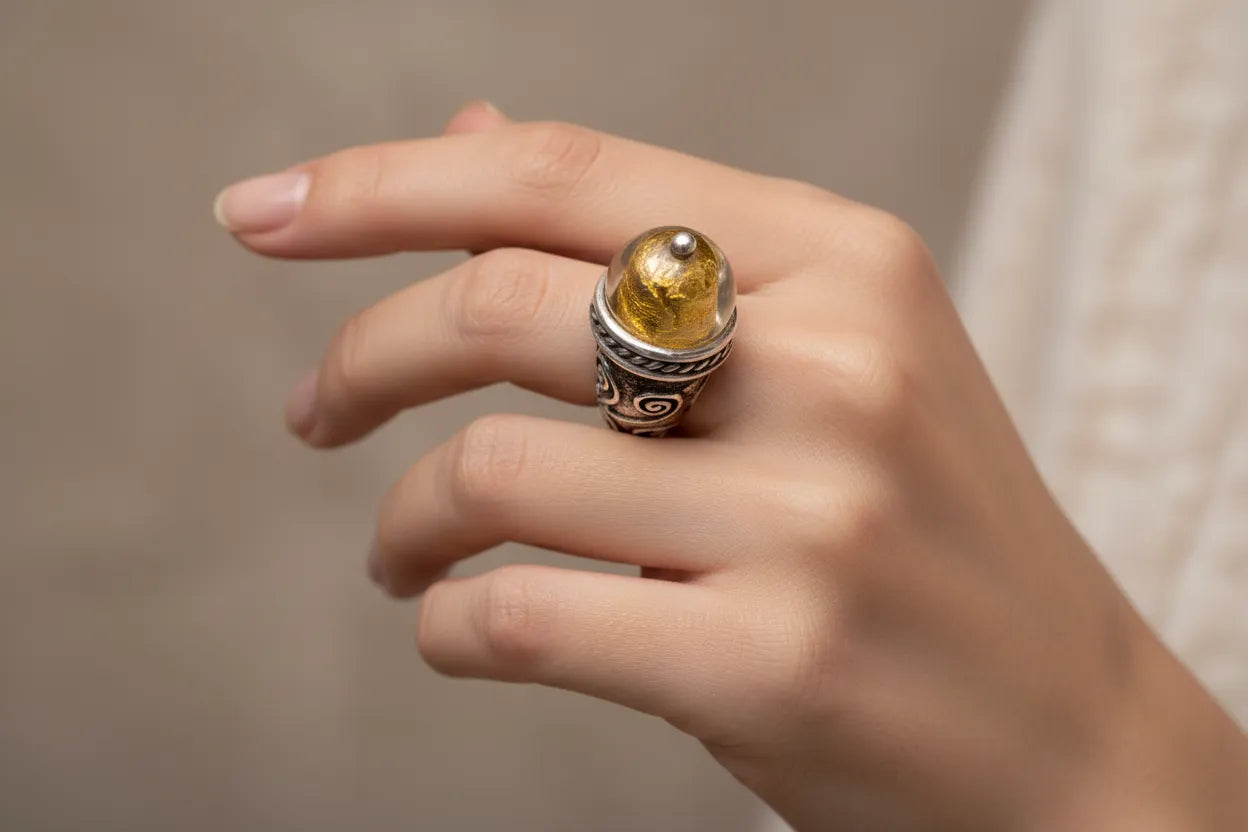 Spiral Ring in sterling silver with glass gold foil stone (DT-03)