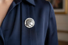 - The back of the brooch is secured with a sturdy "C" clasp and straight pin stem