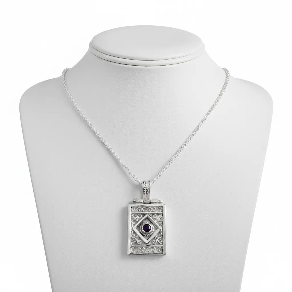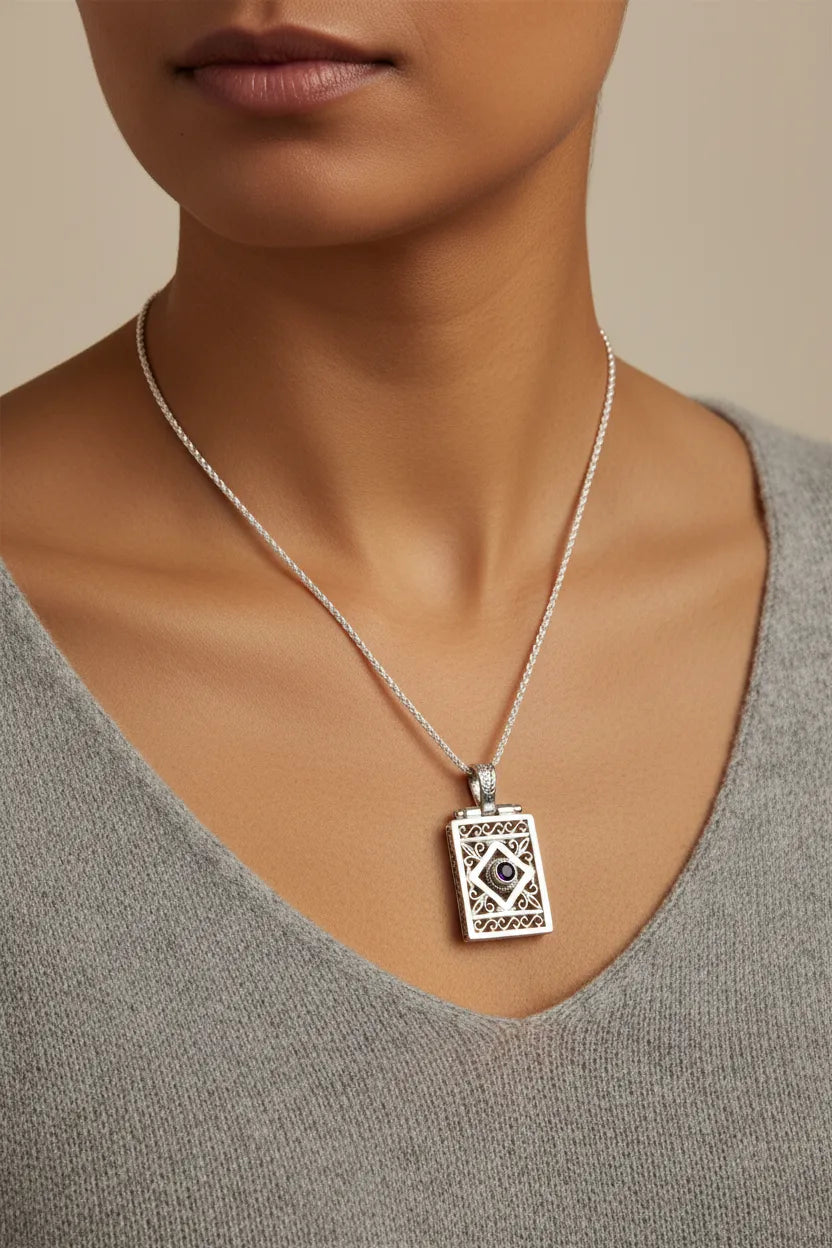 Byzantine Sterling silver Pendant, Solid silver Pendant, Zircon Pendant, Greek Jewelry.
