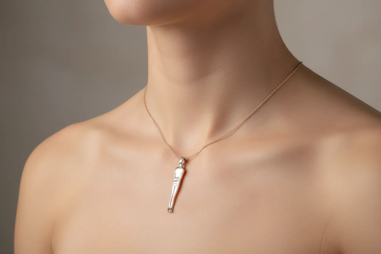 Greek Cycladic pendant, Cycladic jewelry, pendant in sterling silver, Standing female figure (Keros Variety) pendant (PE-96)