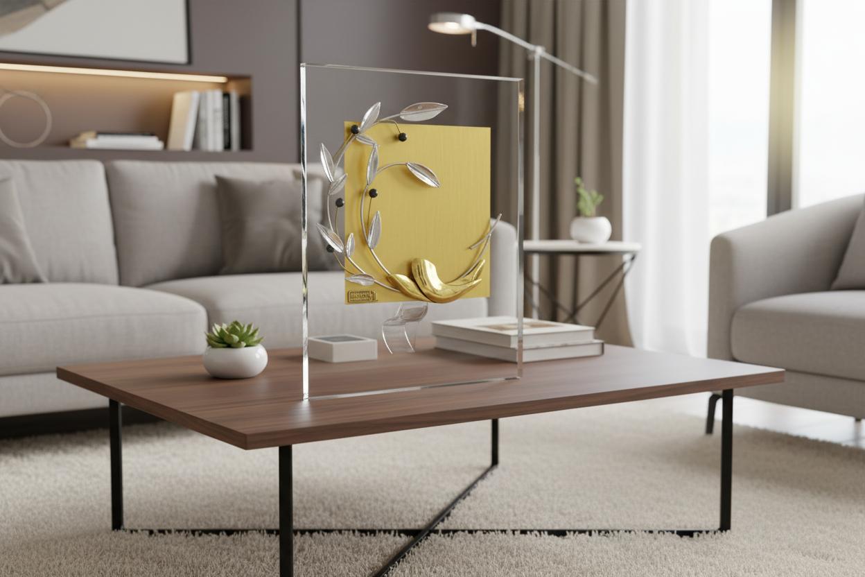 The contrast between the luminous silver wreath and the raw, natural texture of limestone creates a refined yet powerful aesthetic — blending ancient symbolism with contemporary design.