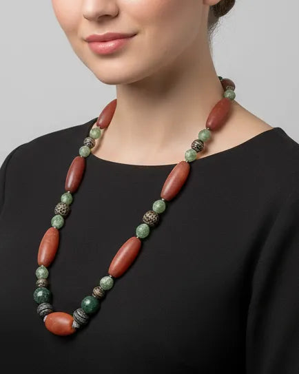 Necklace in sterling silver with old benzahir stones and old carnelian